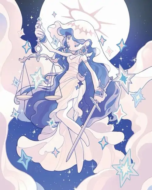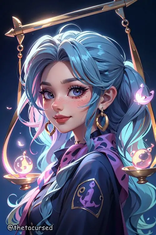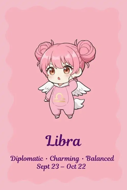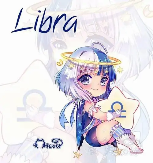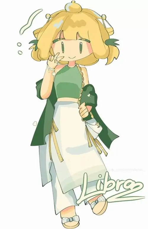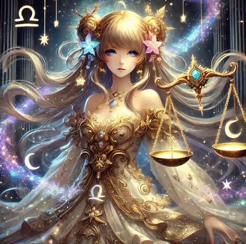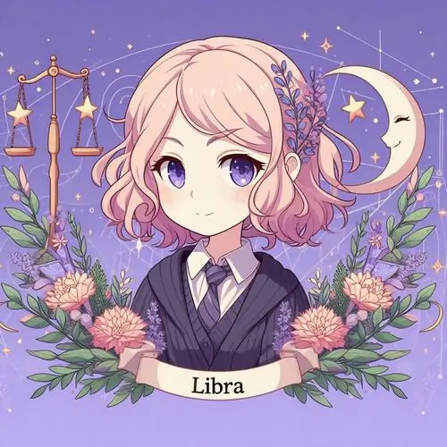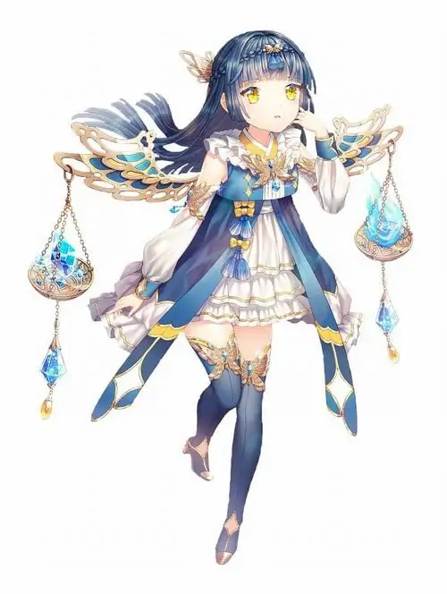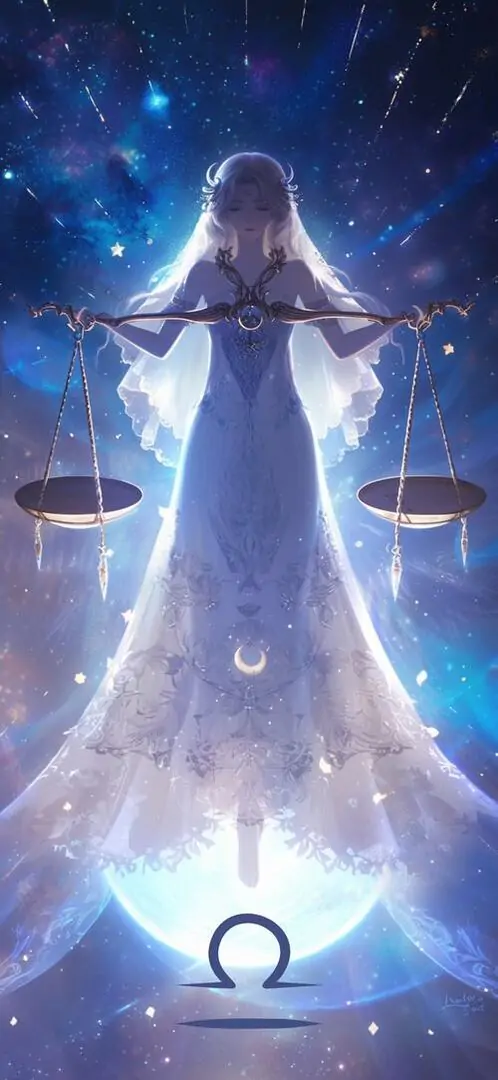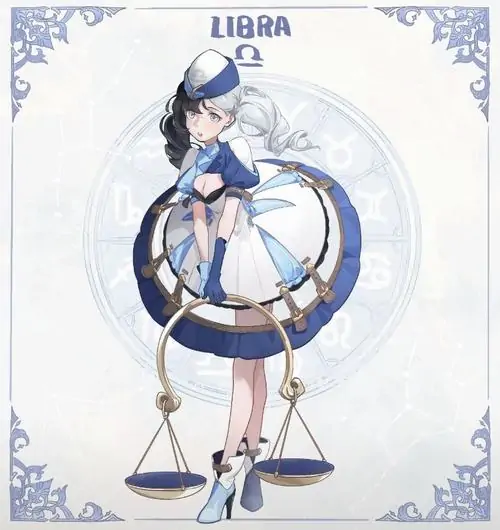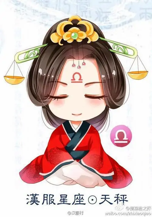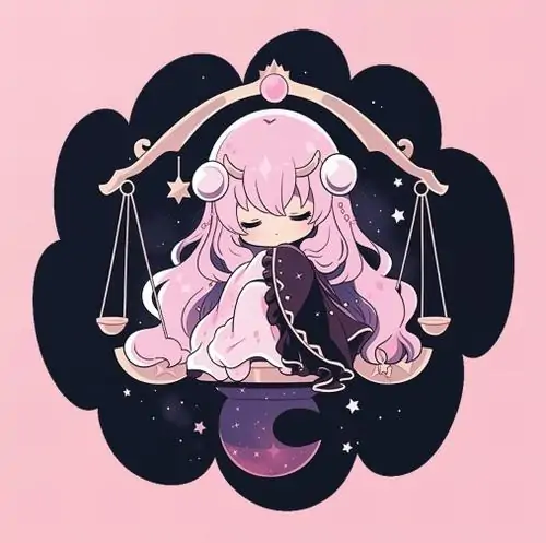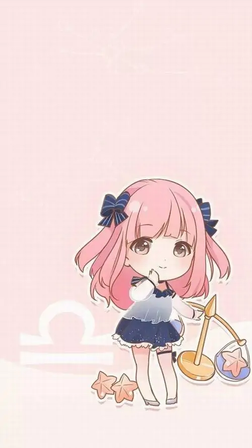 80 Hình Ảnh Cung Thiên Bình Nữ Anime Chibi dễ thương với váy xòe và biểu tượng cái cân nhỏ