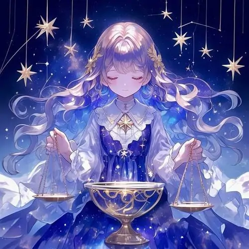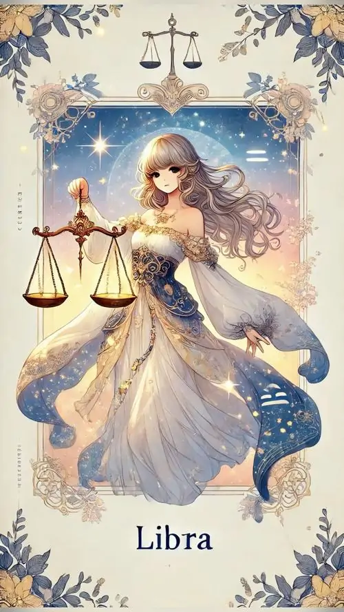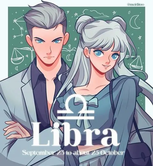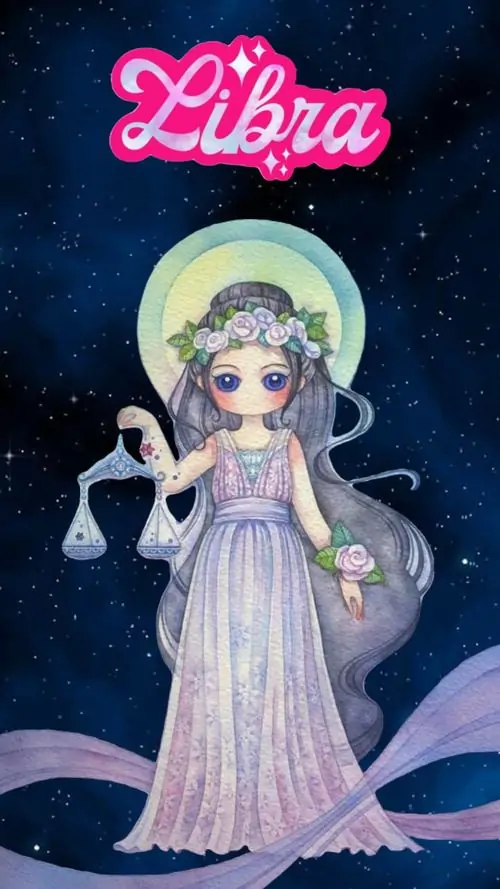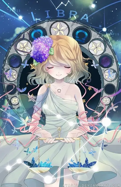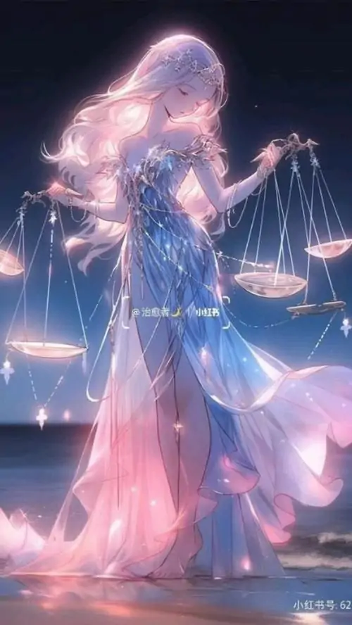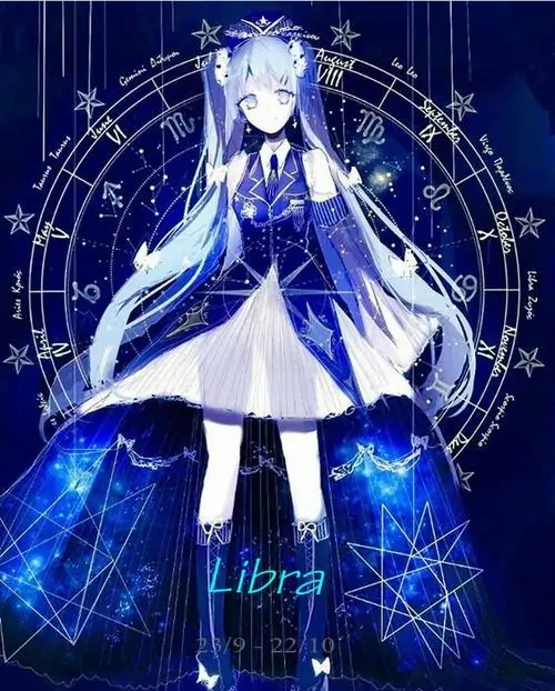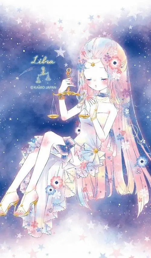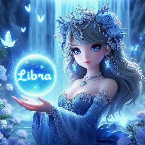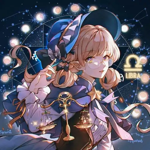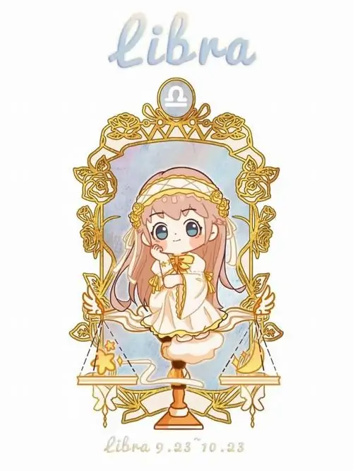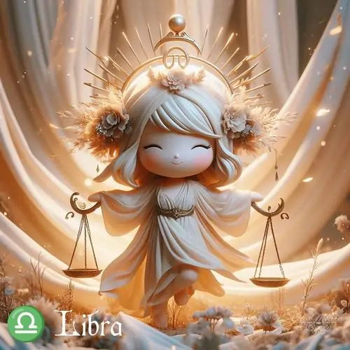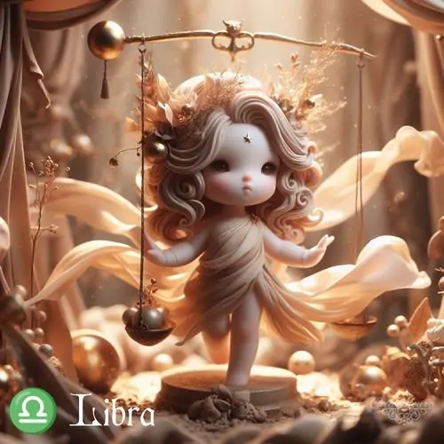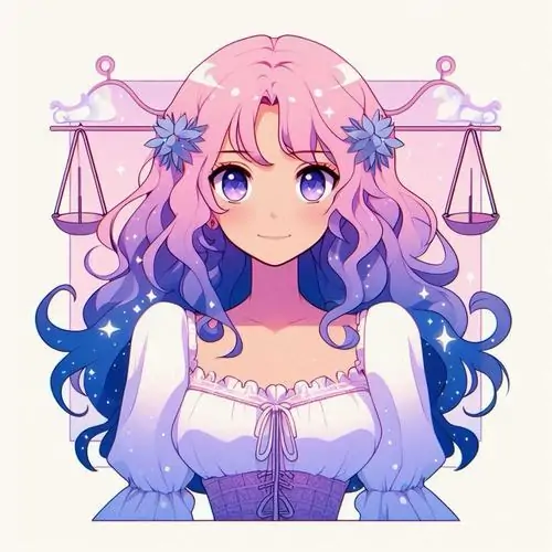 80 Hình Ảnh Cung Thiên Bình Nữ Anime Chibi dễ thương với váy xòe và biểu tượng cái cân nhỏ