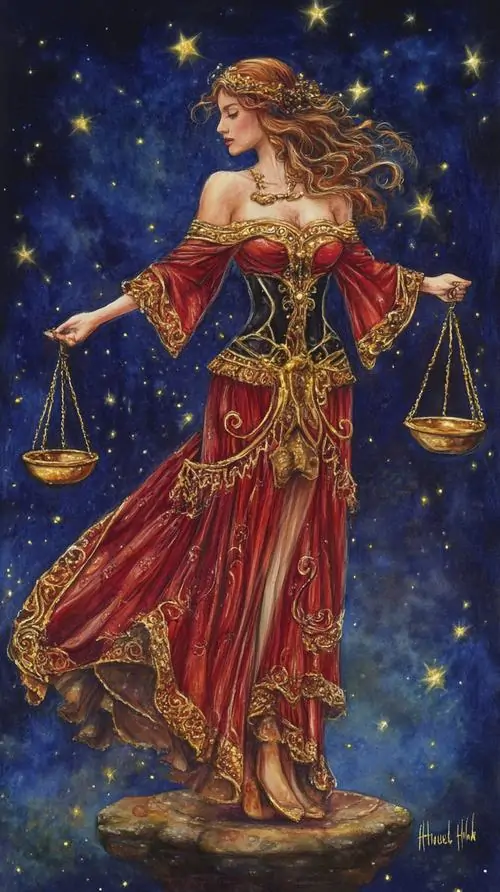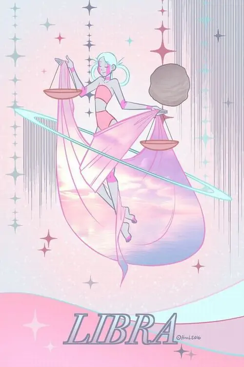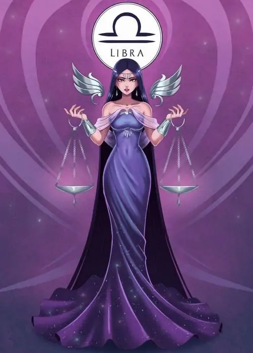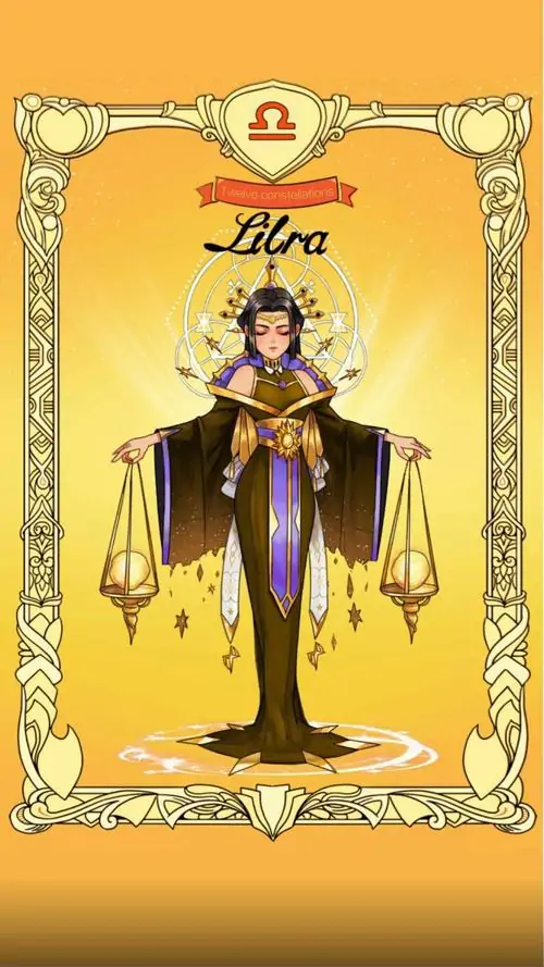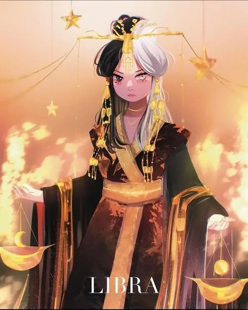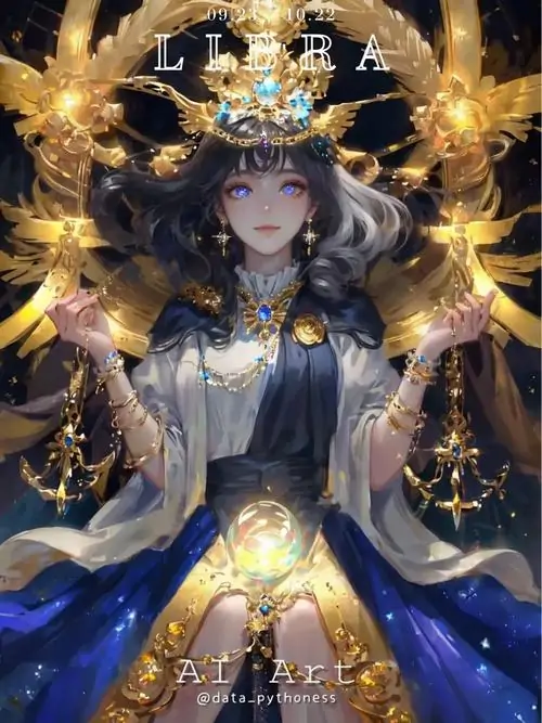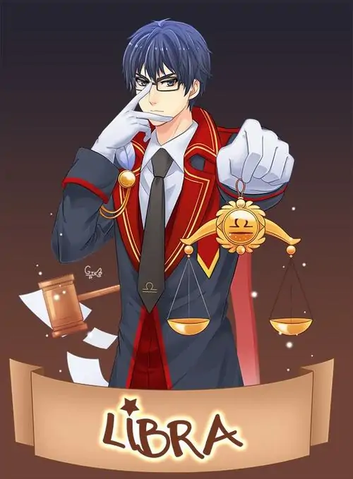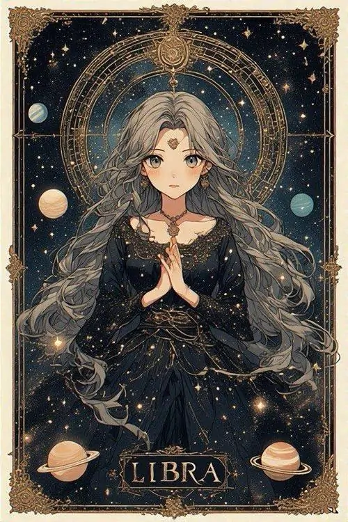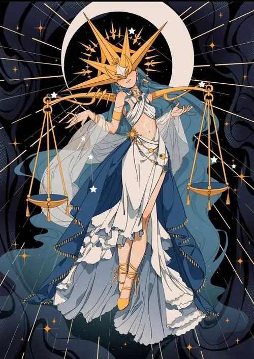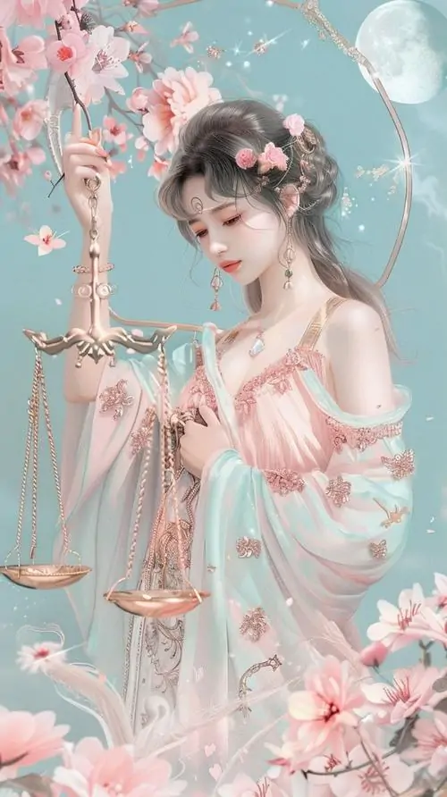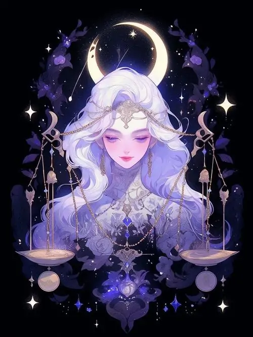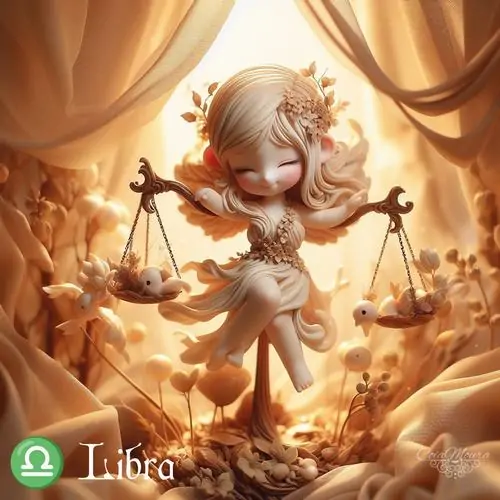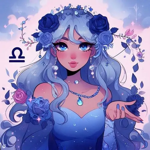 80 Hình Ảnh Cung Thiên Bình Nữ Anime Chibi dễ thương với váy xòe và biểu tượng cái cân nhỏ